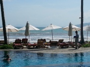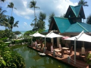 Das Centara Grand Beach Ressort ist eine wahre Traumanlage! Sie liegt in einer wunderschönen Bucht, eingerahmt von einem hohen Felsmassiv. Hier hat man absolut seine Ruhe, da nur wenige Touris aus Ao Nang über den Monkey Trail hierher kommen. Der angrenzende Urwald mit seinen Tieren, vermittelte uns auch richtiges Dschungel-