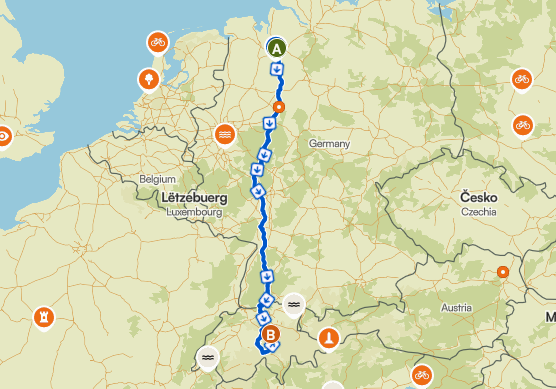 Wie immer startet die Tour in Bremen und führt mich zunächst über einige deutsche Mittelgebirge. Mit dabei sind u.a. das Weserbergland, Sauerland, Westerwald, Taunus und der Schwarzwald. In Luzern (Schweiz) geht es dann in die Alpen, wo der Grimsel- und Furkapass auf mich warten. Die letzte Etappe führt mich dann nach Brunnen am Vierwaldstädter See.